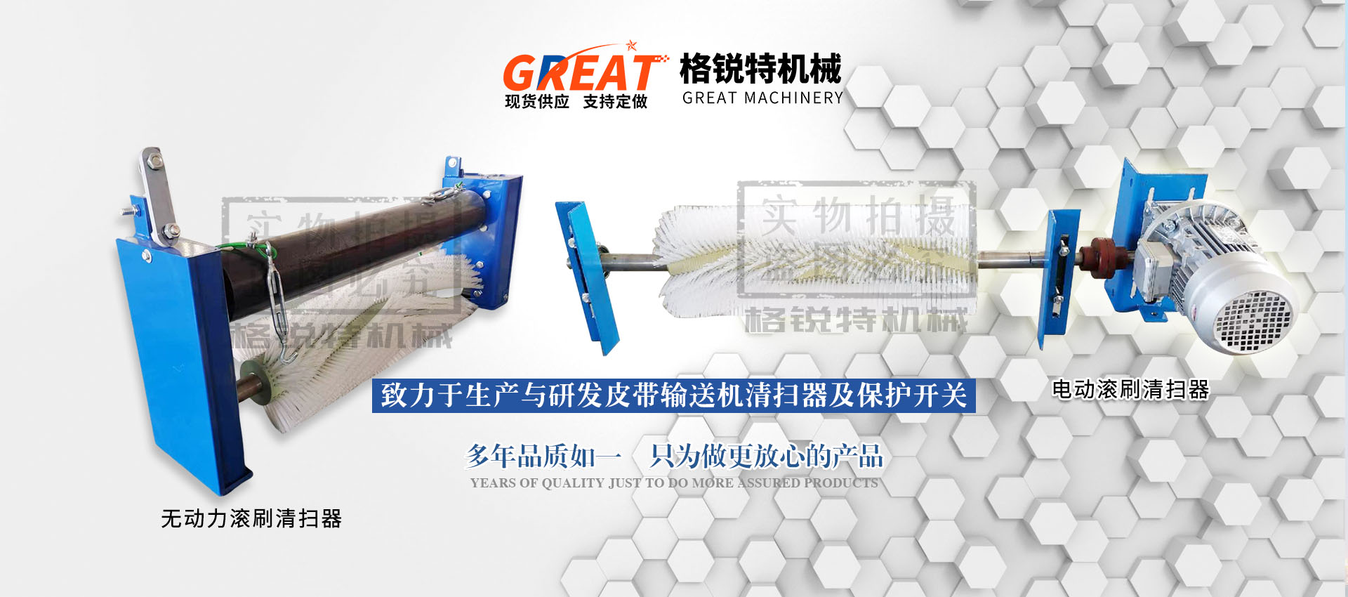 衡水格銳特機械科技有限公司常年致力于生產(chǎn)與研發(fā)皮帶輸送機清掃器及保護開關(guān),其中主營聚氨酯清掃器,合金清掃器,電動滾刷清掃器,機械式滾刷清掃器,緩沖床,緩沖條,雙向拉繩開關(guān),兩級跑偏開關(guān),打滑檢測器,料流檢測器等保護開關(guān),常年銷往各大水泥廠,煤礦廠,電廠,輸送機廠家,質(zhì)量優(yōu)越,價格實惠,望各大領(lǐng)導及同行來廠參觀指導,期待您的光臨!!!